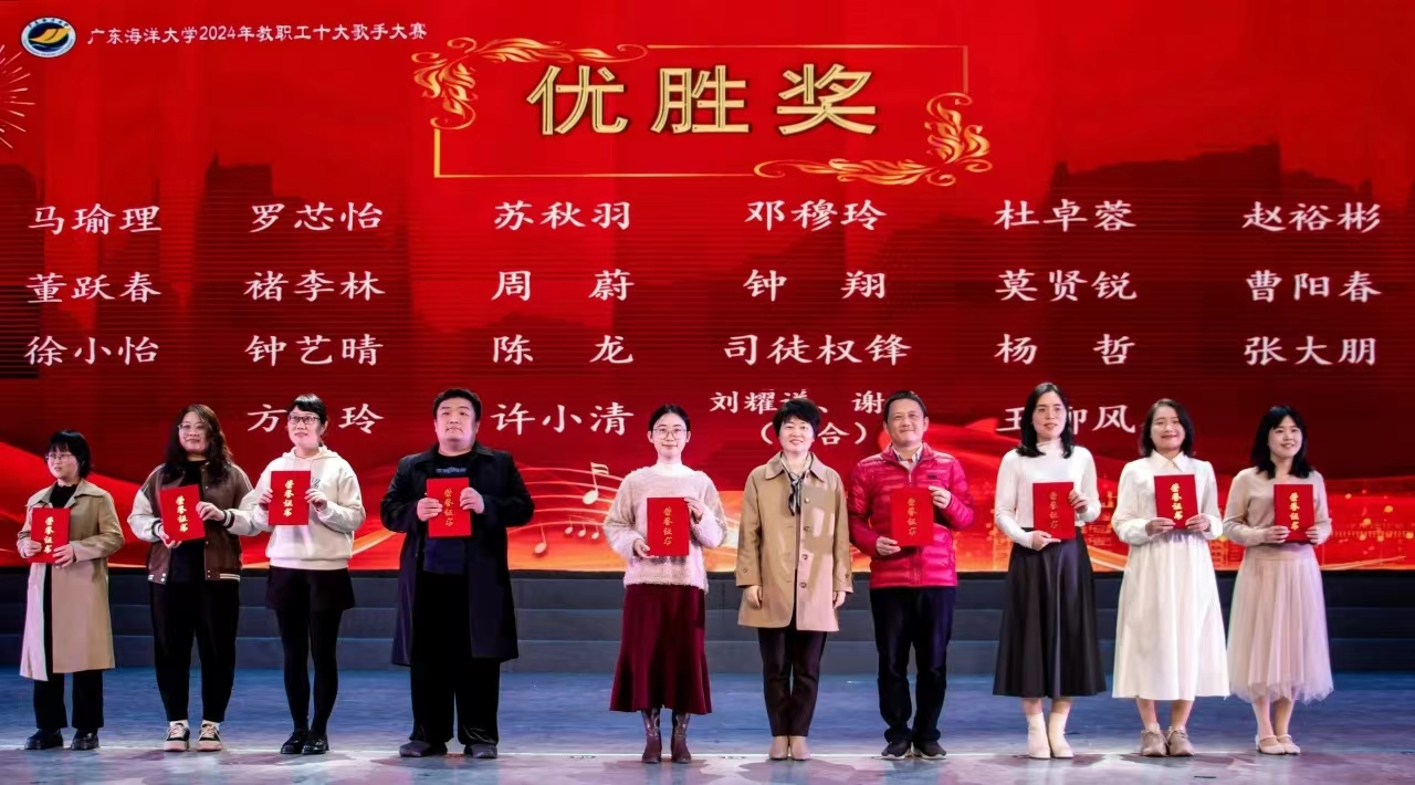 为进一步激发我校广大教职工的爱国爱校热情与工作激情,喜迎学校90周年华诞,12月26日,由学校教育工会主办的“喜迎海大90华诞·2024年教职工十大歌手大赛”总决赛在湖光校区中歌实验剧场举行。我院工会在本次活动中荣获“优秀组织奖”本次比赛得到了广大教职工的热烈响应,教职工们踊跃报名参加比赛。经过激烈角逐,我院工会会员孙一方老师荣获亚军,张大朋老师、褚李林老师获“优胜奖”