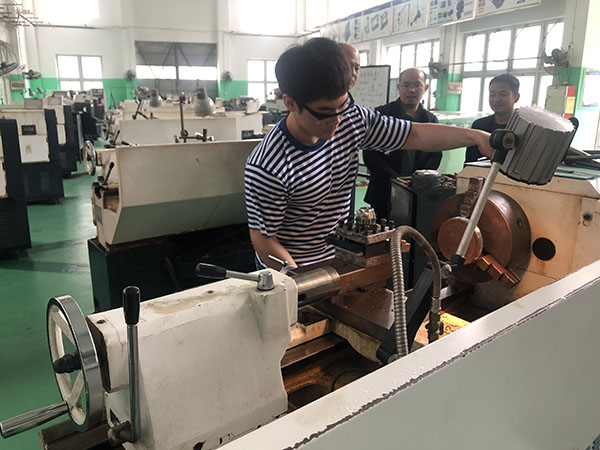 调研组在贾宝柱的陪同下观看了学生水上操艇、金工工艺等训练项目。郑永炳讲到:中国船员技能大比武旨在弘扬海洋文化,为广大海员提供展示技能、切磋技艺的平台,全面提升中国海员综合素质,努力实现我国从海员大国到海员强国的战略目标,助力国家“海洋强国”战略实施和服务国家“一带一路”倡议。希望学校能够高度重视,创造条件,做好各方面的组织协调工作,做好服务保障,安全管理等工作,祝愿同学们在技能大比武中取得好成绩,赛出风格、赛出水平、赛出友谊。