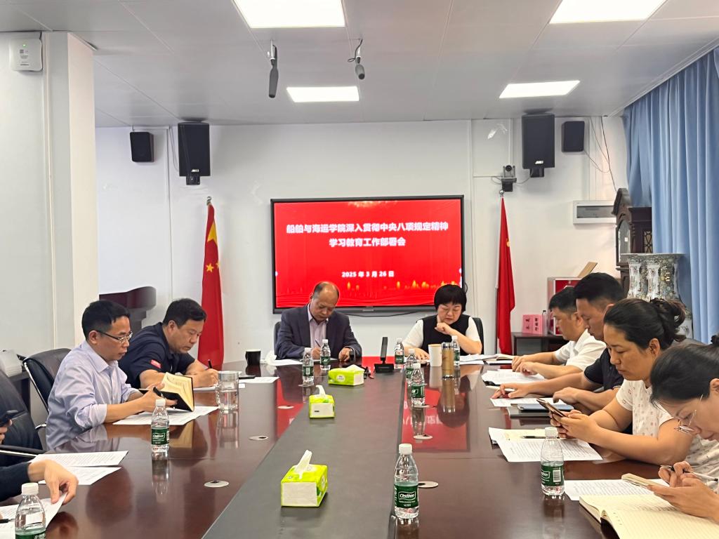 3月26日,船海学院党委在海滨校区实验楼202室召开深入贯彻中央八项规定精神学习教育部署会。学院党委书记邓朝晖主持会议并部署工作,学院领导班子成员、党支部书记及兼职组织员参会。