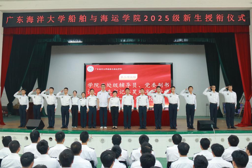 首先,齐昊宣布了新一届半军管学生干部名单,并为半军管学生干部和2025级学生代表佩戴了“一道杠”校衔。随后,邓朝晖总结讲话,强调了半军事化管理对航海类专业学生成长成才的重要意义,要求大家严格遵守学院半军事化管理的各项规章制度,刻苦训练,磨砺意志,并主动将个人理想融入国家发展大局,为实现海洋强国、交通强国的宏伟目标贡献青春力量。