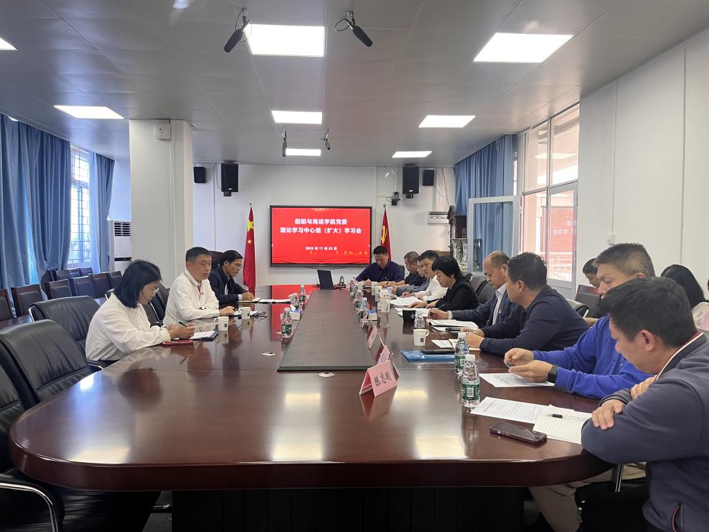 11月25日下午,william威廉中文党委在海滨校区实验楼202会议室召开党委理论学习中心组(扩大)学习会。学校党委常委、副校长鲁义善列席旁听。会议由学院党委书记邓朝晖主持,学院领导班子成员、党委委员、党支部书记,各系(办、中心)主任、教师代表和旁听工作小组成员等20余人参加了会议。