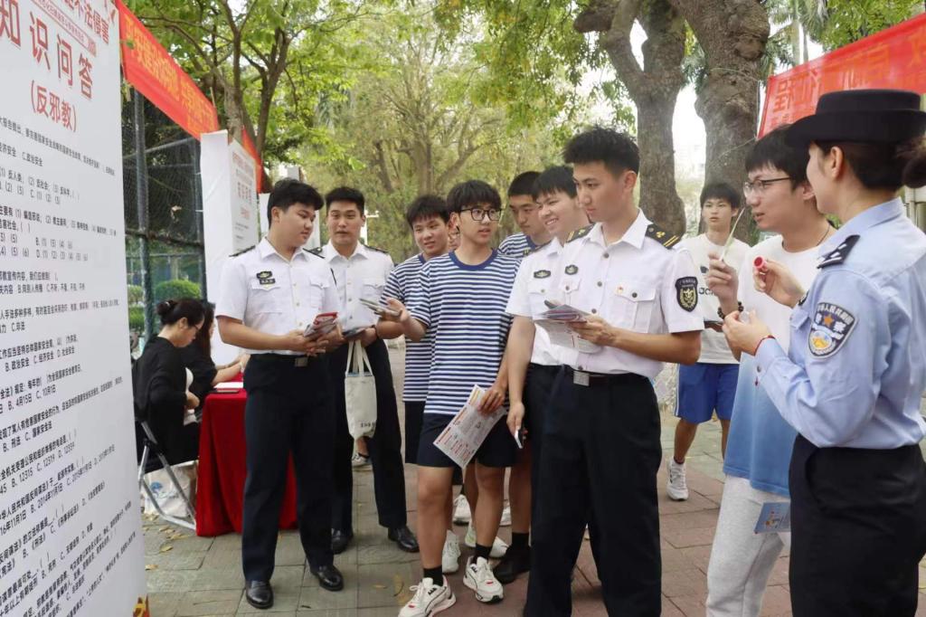 活动中,来自湛江经开区扫黑除恶办、平安办、普法办、反邪教部门、反诈中心、禁毒办、反恐办和处非办等部门的工作人员用通俗易懂的语言从扫黑除恶、平安建设、法治教育、反邪教宣传、防范电信网络诈骗、禁毒宣传、防范非法集资和反对恐怖主义等多方面多角度开展宣传教育。通过签到打卡,有奖知识问答、集印章打卡领礼品等丰富多彩的形式让学生在法治的乐园中遨游,在潜移默化中培养师生的法治意识,主动学习相关知识,宣传法治思维与方法。同学们纷纷表示要主动肩负起维护校园安全稳定的责任,拒绝不法侵害。