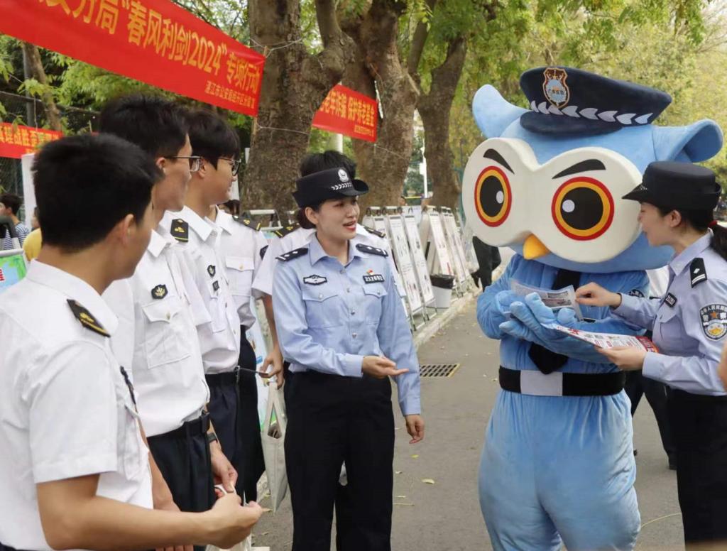 迎接个全民国家安全教育日全面提升学生的法治观念和安全意识,营造海滨校区良好的法治氛围4月12日下午,湛江市经开区政法委联合经开区多部门在海滨校区开展维护校园安全,拒绝不法侵害主题普法宣传教育活动。湛江经开区政法委专职副书记洪国兴、赵秋林,扫黑办副主任许小燕,学校保卫部副部长徐法军,william威廉中文正处级辅导员、党委副书记齐昊,海滨校区保卫科科长乔明海船海学院半军管副大队长刘抒睿、江涛辅导员陈方园出席活动。