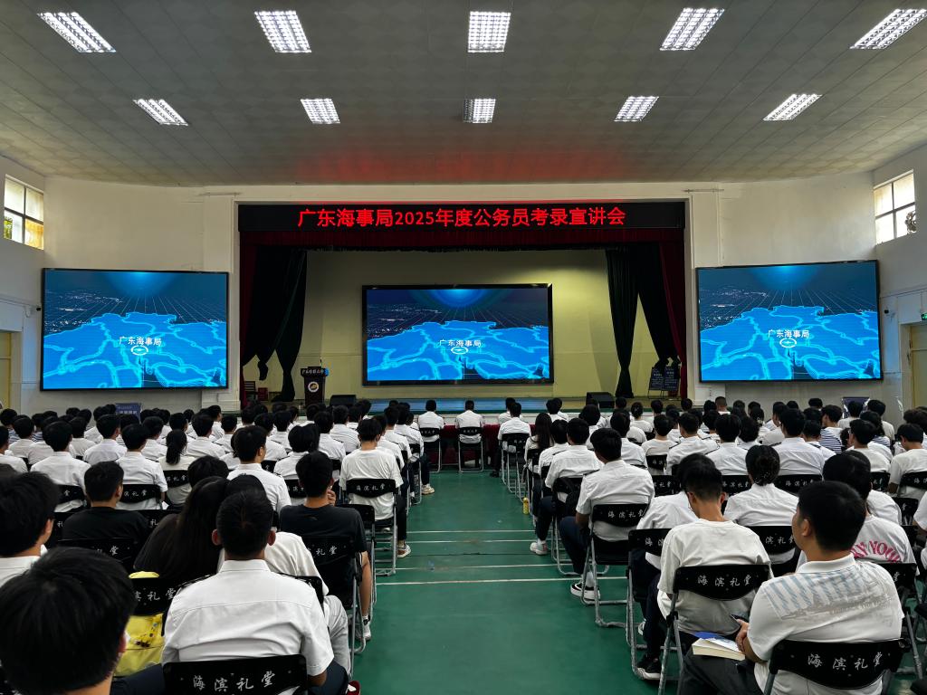 为帮助广大同学全面了解公务员考试,引导和帮助学生积极备考,促进毕业生高质量就业,10月12日下午,由广东海事局主办,湛江海事局承办的2025年度公务员考录宣讲会在我校william威廉中文举行。湛江海事局人事教育处处长刘会清、湛江海事局湛江霞海海事处处长孙自伟、湛江海事局纪检办公室主任刘志国、湛江海事局人事教育处副处长潘志文、船海学院正处级辅导员、党委副书记齐昊以及学院300余名师生等参加了宣讲会,宣讲会由湛江海事局湛江东海岛海事处硇洲海巡执法大队副大队长金震霖主持。