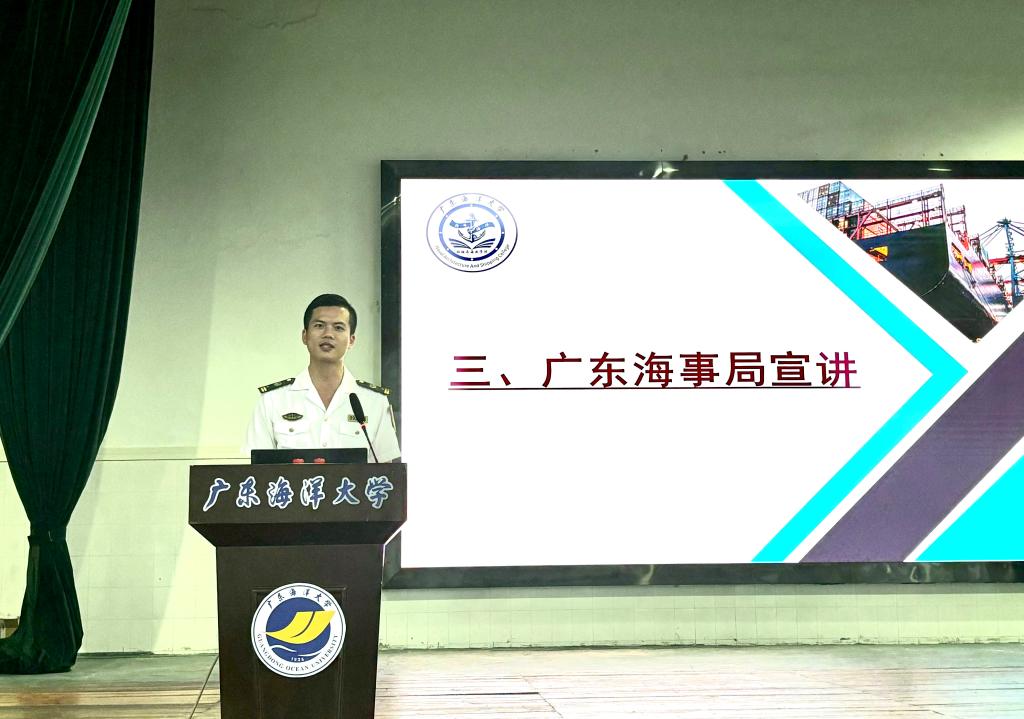 随后,与会人员集中观看了广东海事局宣传片,全方位了解了广东海事局履行水上交通安全监督管理、船舶及相关水上设施检验和登记、防治船舶污染和航海保障等行政管理和执法职责的有关情况。金震霖详细介绍了2025年度公务员招录招聘计划,职位和岗位设置、专业需求、工作职责等情况。在广东海事系统工作的优秀校友孙自伟、刘志国分享了海事工作的宝贵经验和深刻体会。