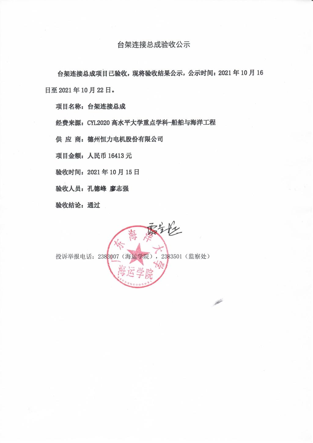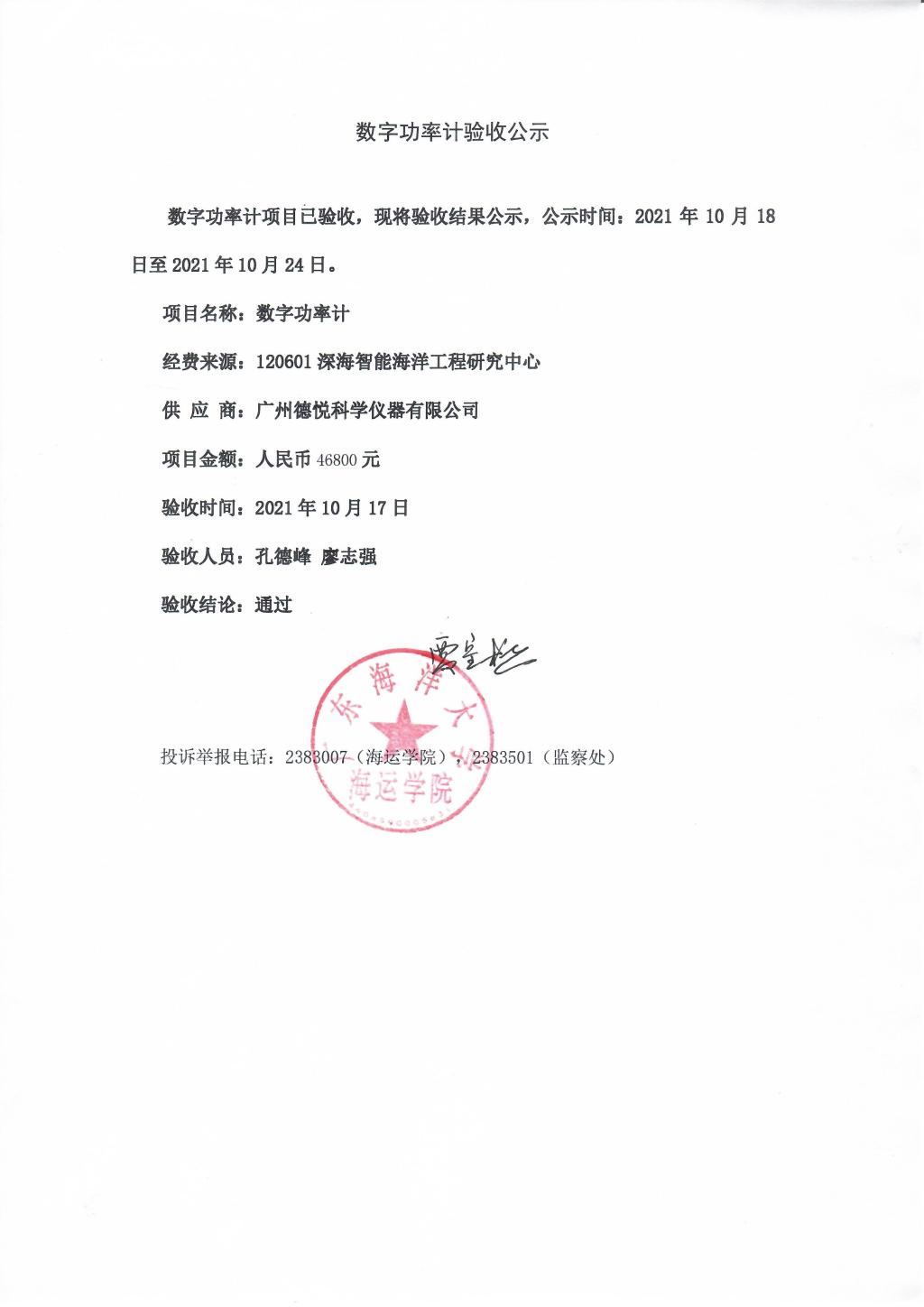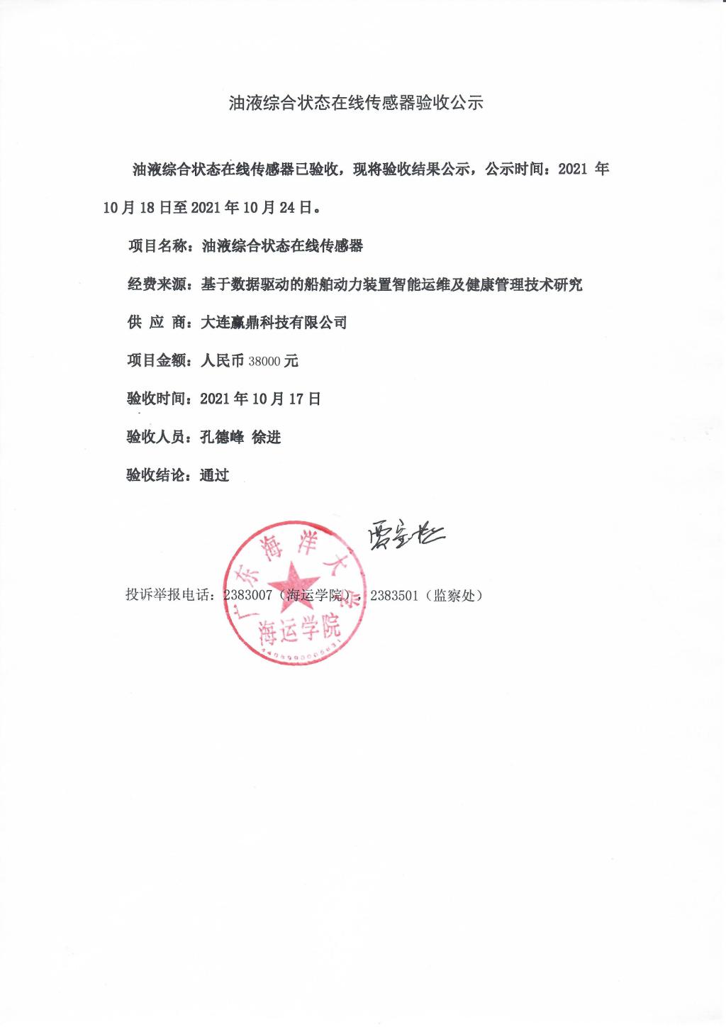 关于油液综合状态在线传感器采购、数字功率计、台架连接总成等项目验收公示