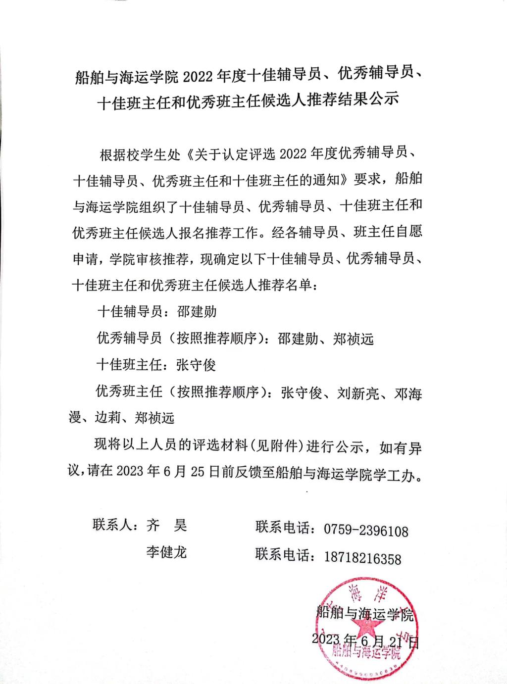 william威廉中文2022年度十佳辅导员、优秀辅导员、十佳班主任和优秀班主任候选人推荐结果公示