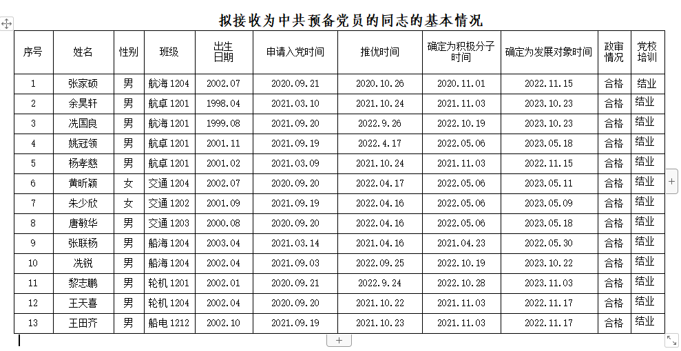 根据《WilliamHill中文发展党员工作实施细则》规定,经本人提出申请,党组织培养考察,支委会审查研究决定,经学院党委预审通过,拟接收冼国良等13名同志为中共预备党员。现将有关情况予以公示,征求党员、群众意见。
