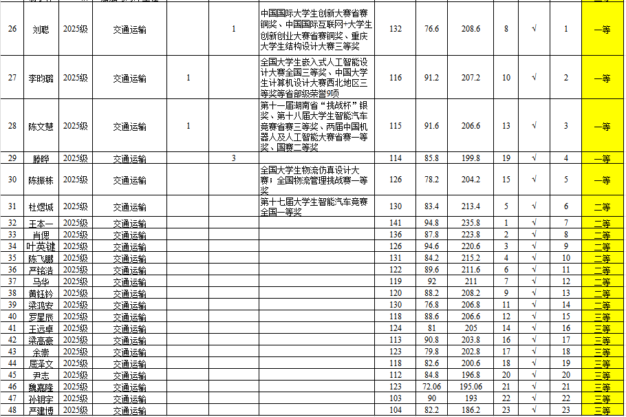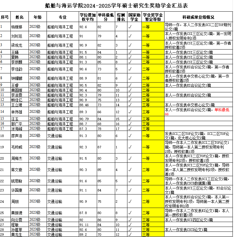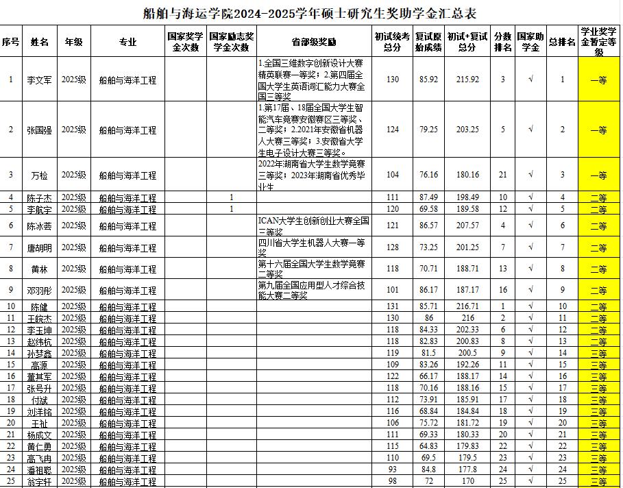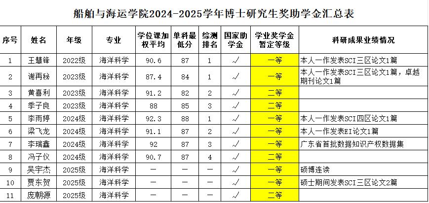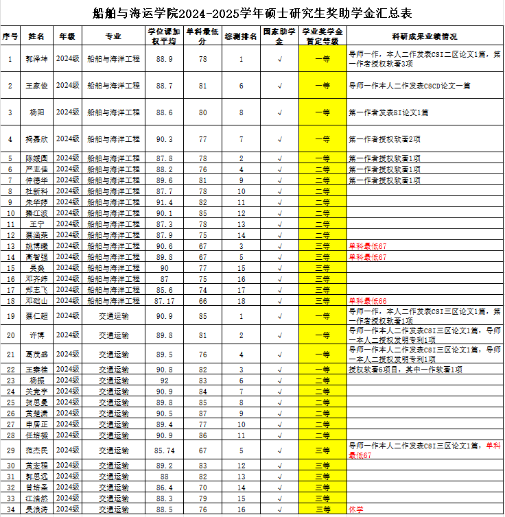 根据《广东省教育厅关于做好2025年秋季学期学生资助工作的通知》及《关于做好2025学年全日制研究生素质综合测评及奖助学金评审工作的通知》(校学生〔2025〕37号)的要求,按照《WilliamHill中文全日制研究生奖助学金实施办法》(校研究生〔2021〕34号)执行,经个人申请、班级复审、学院评审小组认真审核及严格评选,拟确定获得研究生助学金、学业奖学金人员名单。其中,2023级交通运输专业吴浪涛同学因休学,其奖助学金待复学后予以补发。现将评审结果进行公示(详见附表)。