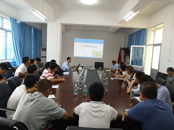 刘雁集博士首先介绍了国内外水下滑翔机的研究现状,接着从搭载传感器、运动模型、动力学模型等方面,结合自己实验室的研究成果,通过视频、动画等形式生动地展示了水下滑翔机的运动控制与应用情况,并展望了水下滑翔机的未来发展趋势。刘雁集博士同与会师生进行了现场交流,共同探讨了水下移动装备的发展趋势及未来方向,开拓了师生的科研视野,对今后的研究工作及学科发展具有重要的启发和指导意义。