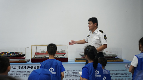 在参观完海上石油981平台后,同学们来到了教学楼101教室。志愿者以我校杰出校友、航海界翘楚——陈宏泽船长为典范,深情地向同学们回顾了学校航海类教育的辉煌历程和卓越人才培养的成就。他们详细讲述了陈宏泽船长在航海事业中的杰出贡献,以及他身上所体现出的坚定信念、卓越能力和无私奉献的优秀品质。这些叙述不仅让同学们对航海专业有了更深的认识,也激发了他们追求卓越、服务社会的热情。