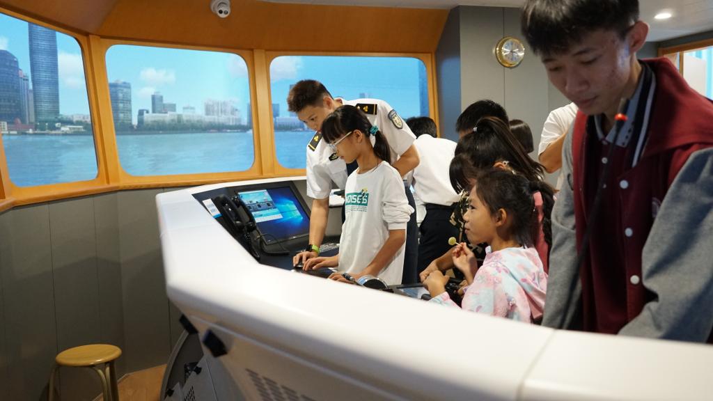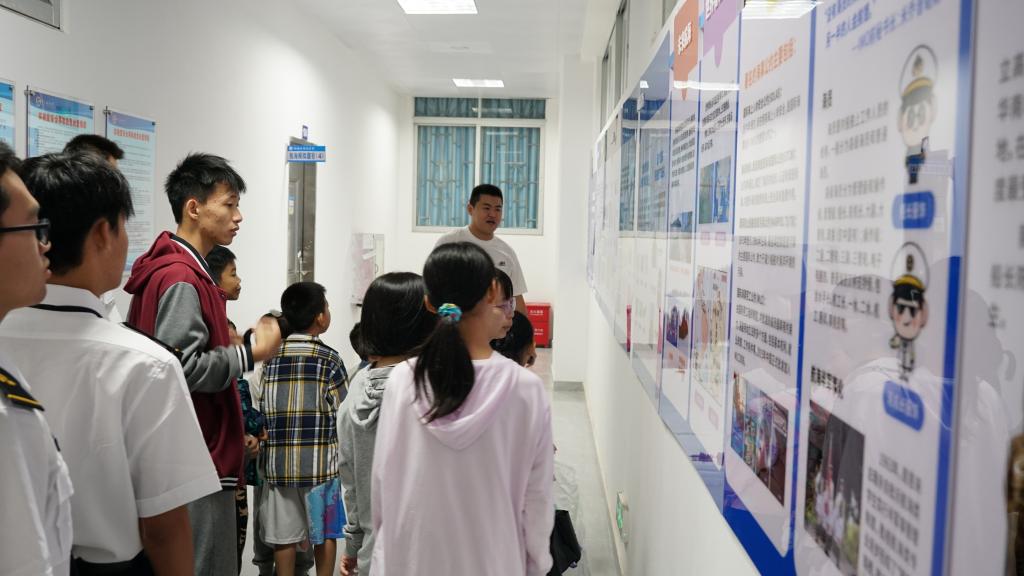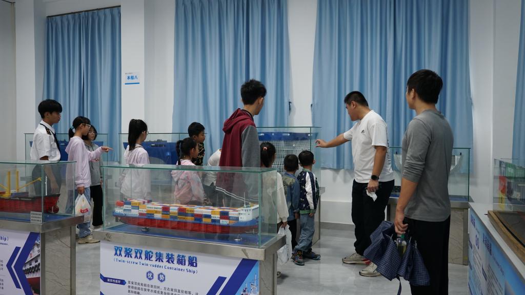 在船模陈列区,各式各样的船舶模型吸引了孩子们的目光。他们围绕在模型旁,仔细观察、热烈讨论,每一个细节都激发了他们对航海科技的浓厚兴趣。