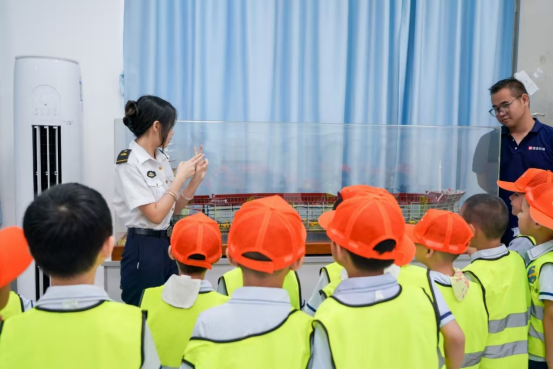 紧接着,参观队伍来到了海洋石油981深水半潜式钻井平台展示区。这里,承载着中国石油事业发展的厚重历史与重大意义,宛如一座知识的宝库。志愿者们先是通过绘声绘色的描述和简单易懂的模型讲解,向小朋友们介绍了981平台的基本概况,以及它对我国能源事业发展的重要历史意义。小朋友们被深深吸引,眼睛里闪烁着好奇的光芒,积极与志愿者互动,提出一个个天真可爱又充满想象力的问题,现场气氛十分活跃,仿佛一场欢乐的知识派对。