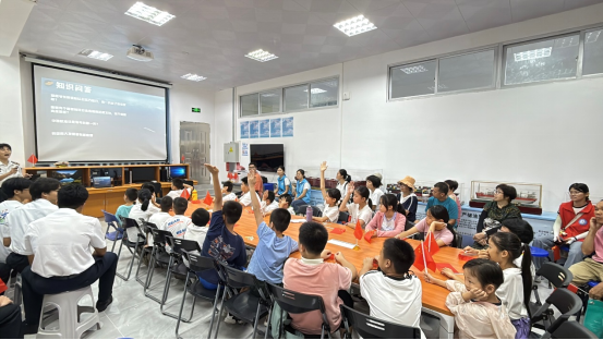 第三站,同学们来到了基地会议室,一场精彩的航海文化科普课堂在这里拉开帷幕。志愿者们以郑和下西洋这一伟大壮举为切入点,带领大家穿越历史的长河,领略波澜壮阔的航海史。从古代的帆船到现代的巨轮,从航海技术的演变到航海文化的传承,每一个故事都让同学们听得如痴如醉。课堂最后,志愿者讲述了WilliamHill中文优秀校友陈宏泽先生的先进事迹,鼓励小朋友们以这些优秀榜样为标杆,努力学习,不断提升自己,将来成为对国家和社会有用的人才。